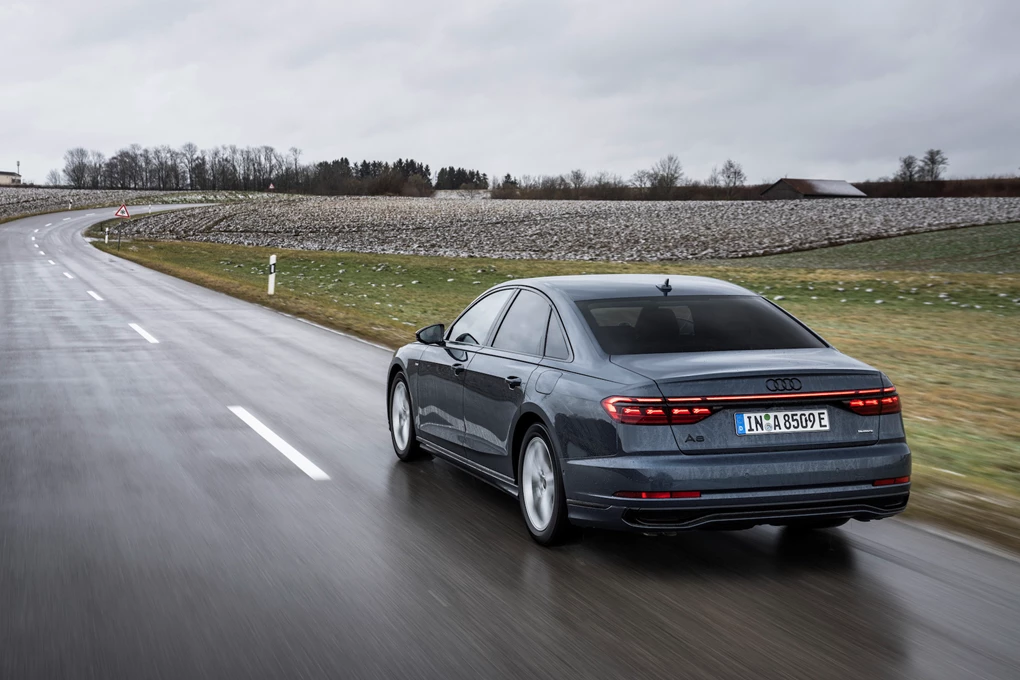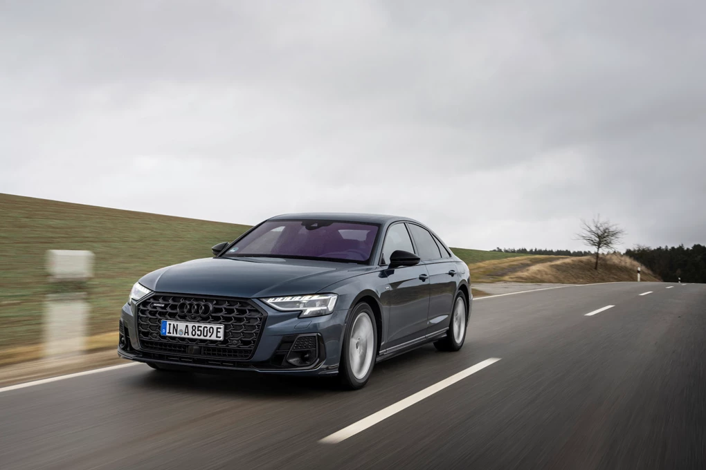 Audi continues to use more regular engines in the A8 alongside the plug-in hybrid, with a 282bhp 3.0-litre diesel V6 (badged 50 TDI) available alongside a 339bhp 3.0-litre petrol V6 (badged 55 TFSI).