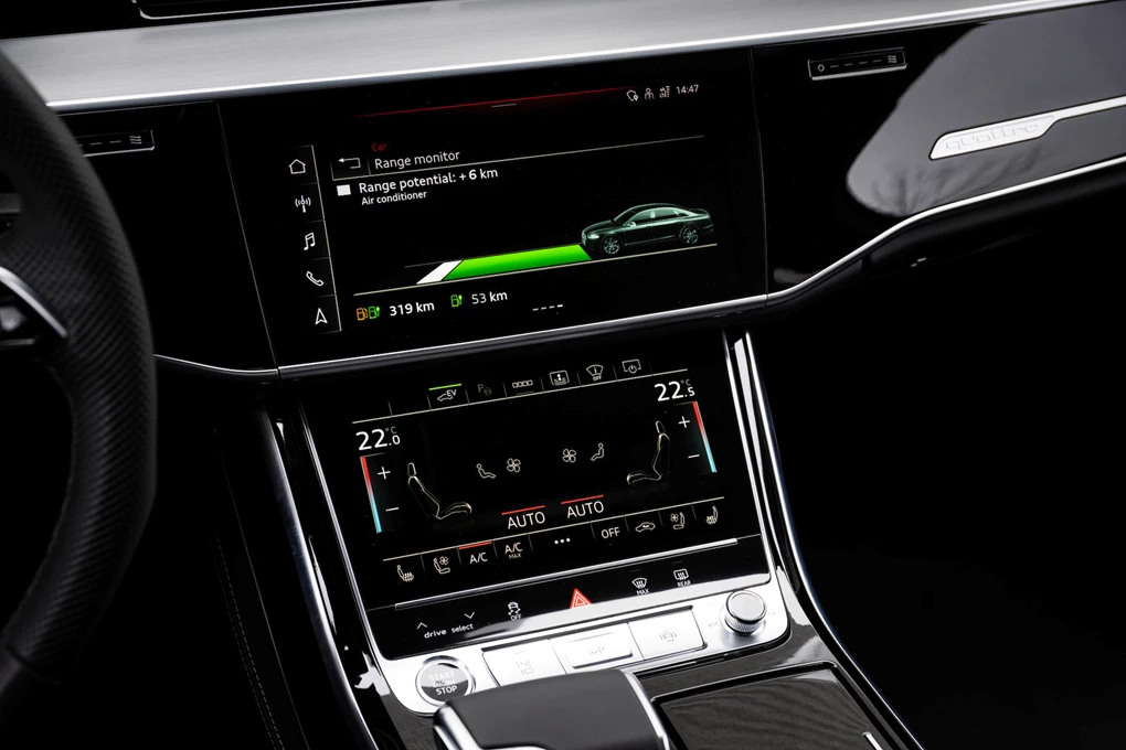 It’s also packed with a range of intelligent features to make the most of its efficiency. If a route is programmed into the sat nav, it can work out where and when to use electric or petrol for the cleanest travel, while the superb regenerative braking is able to slow the car down as you approach a lower speed limit or hazard – all without touching a pedal – and really adds to the relaxing nature of the A8.