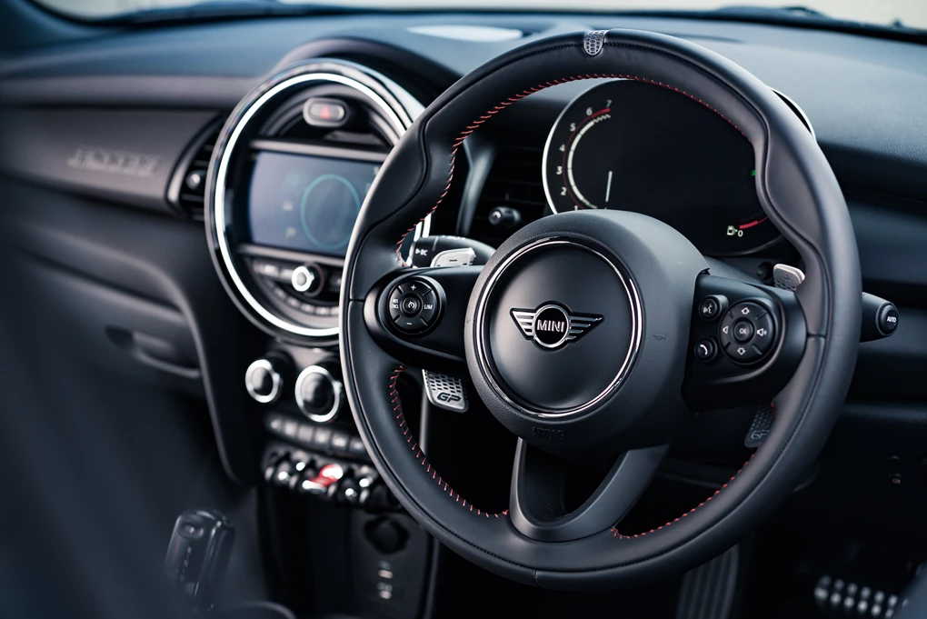 However, the fitment of this suspension does mean that the GP has excellent body control which really pays dividends in the bends where the car corners flatly and keenly. The steering is also excellent, with plenty of weight to it. There’s no ‘Sport’ button, either; Mini has set the car up to be as good as it can be and there’s no way to adjust any aspect of its setup.