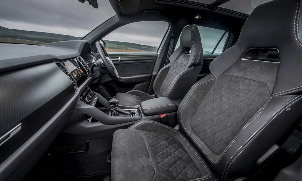 Even on regular Kodiaqs, the interior is one of the best things about it – combining impressive spaciousness with good build quality. Both of these factors remain on this Sportline version, with the model also adding some comfortable and supportive Alcantara sports seats – adding a bit of sporty flair to the cabin, alongside carbon-fibre-effect trim and a perforated leather sports steering wheel.